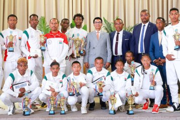 Les 35 jeunes athlètes méritants qui ont brillé sur la scène sportive internationale cette année ont été reçus hier par Andry Rajoelina au Palais d'État d'Iavoloha . Ces champions, issus de disciplines telles que le jiu-jitsu, le body-building, la pétanque, la natation, le kickboxing, l'haltérophilie, le tennis de table, les jeux d'échecs et le judo, ont offert à Madagascar un total de 24 médailles d'or, 11 médailles d'argent et 20 médailles de bronze.