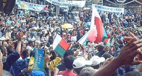 C’est une bonne décision d’organiser cette manifestation et nous partisans de la mouvance madagascar sommes prets. Mais nous démandons aux Zafy, Fetison, Ratsiraka, Rakotovahiny, Manandafy..., comme vous etes nos leaders, le jours J vous serez devant nous à la tete de la manifestation, et nous on est derièrre (que ce ne serait pas l’inverse qui se produira). C’est inadmissible si vous restez chez vous et que ce sont uniquement vos partisans qui vont endurer les bombes lacrymogènes etc..."