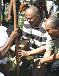 Sous les directives du Premier Ministre Charles Rabemananjara, tout le personnel de la Primature et de ses organismes rattachés, entre autres l’ONN, le FID, l’IMATEP, le PADR, et l’Académie Nationale ont participé à un reboisement collectif qui s’est déroulé à Tsimahabeomby – Imerintsiatosika, mercredi dernier. Il s’agit de mettre en terre plus de 3700 eucalyptus et 500 arbres fruitiers, suivi d’une séance d’entretien pour les arbustes « Ananambo » plantés l’année dernière. Ces derniers ont subi les méfaits de la grêle mais ont pu quand même subsister à 65%. Les vertus de l’Ananambo ont été développées par l’ONN, un substitut pour l’alimentation et une plante qui procure beaucoup de vitamines. Le Premier ministre a sollicité les participants à porter une attention particulière sur cette plante remarquable qu’est l’Ananambo car les résultats sont probants en matière d’alimentation. La région de l’Itasy devrait initier la population à la culture de cette plante qui devrait être lancée également dans les autres régions. La population locale d’Imerintsiatosika et d’autres localités avoisinantes ont pris part à ce reboisement.