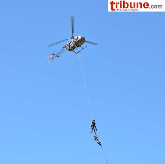 Les DAHALOS doivent bien rire en voyant cette demonstration de commandos de descente d´helicoptere pour maitriser un terroriste !Le defile aerien avec ce petit avion utilise pour repandre des insectcides montre vraiment que MADAGASCAR n´a rien dans l´armee de l´air:PAS D´AVIONS DE COMBAT-PAS D´AVIONS DE CHASSES ! Alors que les GENERAUX foisonnent a flot !le PM est bien GENERAL DE L´ARMEE DE L´AIR non !