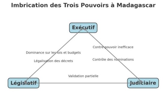 Voici le schéma illustrant les imbrications des trois pouvoirs à Madagascar :