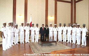 Les cérémonies de remise de drapeaux d’adieu aux armes des généraux retraités aura lieu ce jour au « ceremony Building » du palais d’Etat d’Iavoloha. Ces cérémonies, passées sous le haut patronage du Président de la République Marc Ravalomanana, seront accompagnées d’une présentation des généraux nouvellement nommés au titre de l’année 2008. Le Président Marc Ravalomanana, a déjà reçu, dans la matinée du lundi 01 Décembre, au Palais d’Etat de Iavoloha, 16 des 17 Officiers Généraux de l’Armée malgache nouvellement promus pour cette année 2008, venus se présenter au Chef Suprême des Armées, aux côtés du Ministre de la Défense Nationale, Madame Manorohanta Cécile. Le Président de la République a saisi l’occasion pour transmettre aux officiers-généraux des instructions fermes relatives aux objectifs attendus de leur mission et pour lesquels il est nécessaire de relever en priorité les trois défis : Installer la bonne gouvernance sur des bases solides ; restaurer le civisme ; observer et respecter rigoureusement la discipline, et appliquer les sanctions aux récalcitrants.