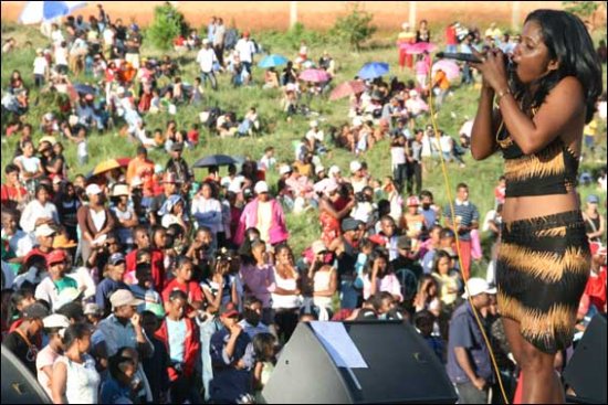 Direction maintenant Antsonjombe où Lola a effectué sa première apparition sur scène après sa mésaventure à Ampitatafika en janvier. Des spectateurs ont répondu à l’appel de l’artiste, mais l’affluence n’était pas celle qu’on attendait. Il y a eu moins d’assistance que lors de la dernière prestation de Lôla, en 2008, lors de la célébration de son 10ème anniversaire de scène. Mais artistiquement parlant, c’était certainement la meilleure formule de l’année : Lôla en tête d’affiche, accompagné de Mika et Davis, de Samoela et de Shyn.