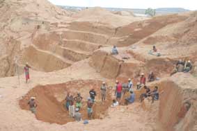 Dans une carrière d’Andohan’Ilakaka, plus d’une centaine d’hommes se lancent dans le décapage afin de longer le tunnel pour aboutir à la mine de saphir. Ce décapage s’avère des plus dangereux car il y a eu déjà ceux qui ont laissé leur vie là-bas, au cours de cette aventure périlleuse à plus d’un titre. D’autres « exploitants » restent introuvables jusqu’à ce jour, pour avoir tenté la même aventure en quête de saphir.