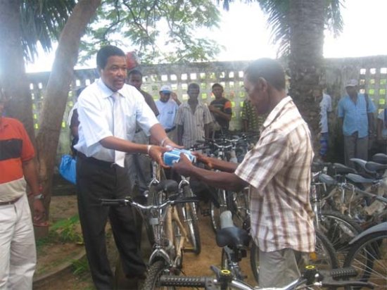 Le vendredi 11 mars dernier, jour du lancement officiel de la campagne du vary Jeby, 250 paysans des communes d’Antanimasaka et de Manaratsandry, district de Marovoay ont reçu officiellement du BVPI, les 80% des apports en présence du chef de la Région Boeny et des autorités locales de Marovoay. Il s’agit de 1400 kg de semence hybride améliorée de Chine, d’engrais chimiques de 12 tonnes et de 8 tonnes d’engrais biologique Guanomad. En outre, 194 charrues, 198 herses et 215 sarcleuses faisaient également partie des engagements du BVPI auprès des riziculteurs de Marovoay et offertes ce jour-là. 32 bicyclettes neuves ont complété les matériels agricoles afin de faciliter le déplacement et la communication inter-paysans ainsi que la communication vers les centres de service agricole. La distribution des intrants et de la gestion des matériels ont été confiées au président de chaque association bénéficiaire.