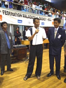 – Guy Rakotondramanana : « Heureux » si c’est le mot juste pour décrire la joie immense que j’ai sentie en venant assister à ces matchs. Privé de terrain et de jeu pendant ma convalescence, c’est comme si on avait arraché une partie de ma vie. Maintenant que je peux marcher avec l’aide de mes béquilles, je profite de la chance que j’ai. Le basket fait partie de ma vie, ça coule dans mes veines je ne peux plus m’en débarasser, et je prend ça comme une bénédiction. La première chose que je me suis promis une fois remis sur pied, c’est d’assister à un match et me voila. En venant assister à ces jeux, j’ai envie de me remettre immédiatement au travail. Mais chaque chose en son temps, avec ma fragilité je ne veux encore courir aucun risque bien que je fasse déja des rééducations intensives ».