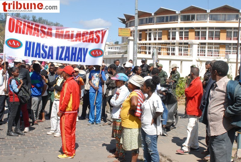 « [Efa andrasana ihany koa ny fisehoan’ny sampany ao amin’ny Fitsarana sy eny amin’ny Oniversité ato ho ato. Ny ao amin’ny “Solidarité syndicale de Madagascar” moa dia efa nanao ny anjarany amin’ny antso avo manentana ny mpiasa hitokona : http://gvalosoa.com/?p=49554] »