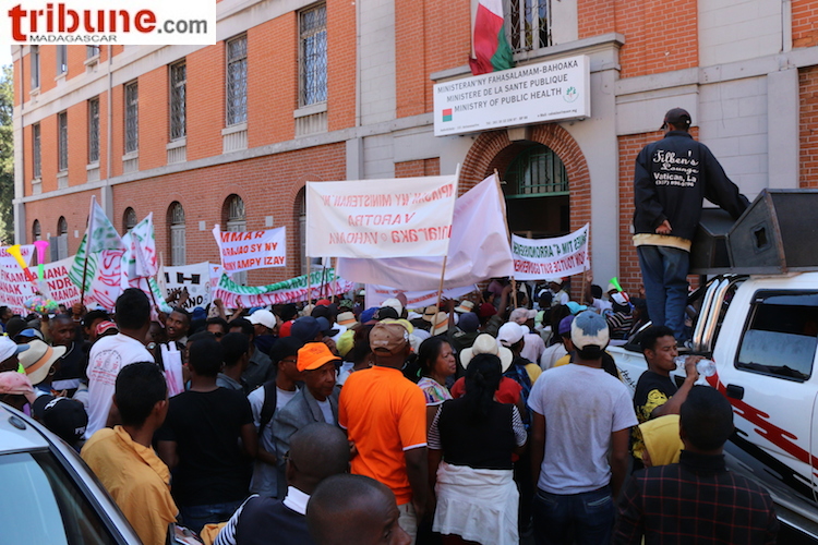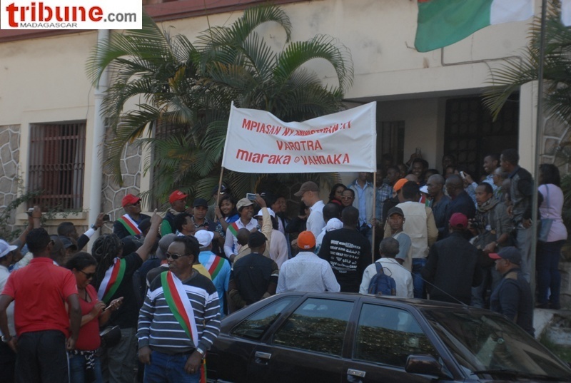 Comme prévu, les manifestants se sont dirigés vers les ministères et institutions aux abords d’Anosy et de Tsimbazaza : l’Assemblée nationale, le ministère du Tourisme, la préfecture, le Sénat, le ministère de l’Agriculture, le ministère des Travaux publics, le ministère de la Culture et de la sauvegarde du patrimoine, le ministère du Commerce et le ministère de la Santé.