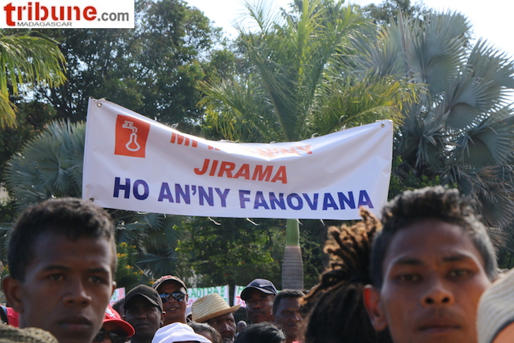 Tout à commencer à la Jirama, à Soanierana, vers 9h lundi matin. Hanitra Razafimanantsoa, député TIM et ses collègues du collectif des parlementaires pour le changement, sont venus sur les lieux pour lancer un appel à l’endroit du personnel de ce service public à renforcer le mouvement de grève sur le parvis de l’Hôtel de ville. Malgré la présence en grand nombre des forces de l’ordre dans l’enceinte de cette société d’Etat, des employés ont rejoint les députés ainsi que plusieurs centaines de manifestants, dans le calme.