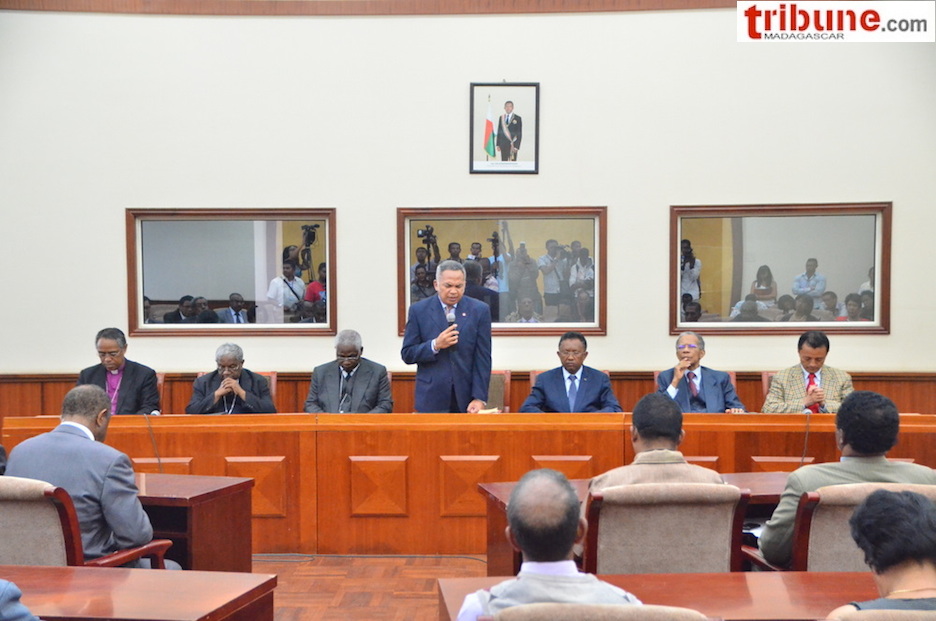 Après la présentation publique de la synthèse des résolutions prises lors de la dernière journée qui a clôturé samedi 2 mai, les assises nationales pour la Réconciliation, le président de la République, Hery Rajaonarimampianina, a reçu officiellement, ce 4 mai 2015, des mains du FFKM, les documents contenant l’intégralité des recommandations de la Conférence nationale qui s’est déroulée du 28 avril au 2 Mai 2015 au CCI Ivato.