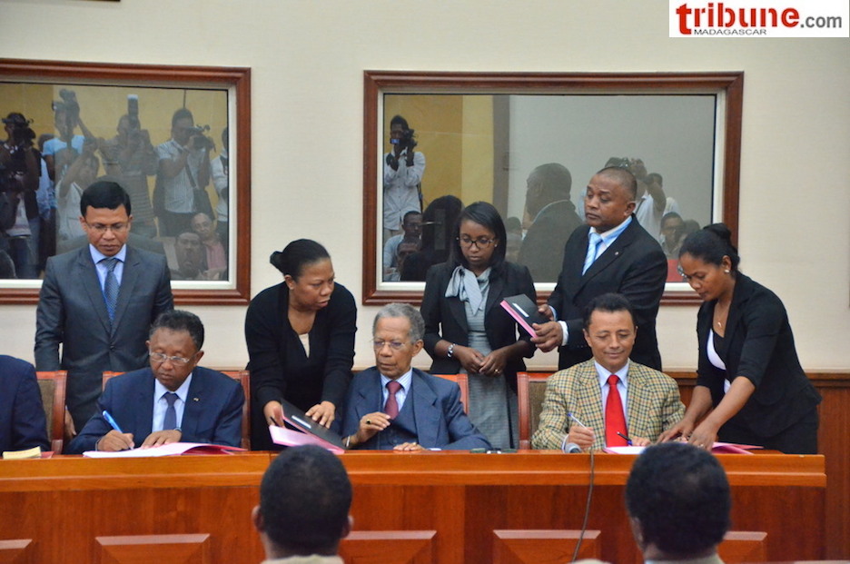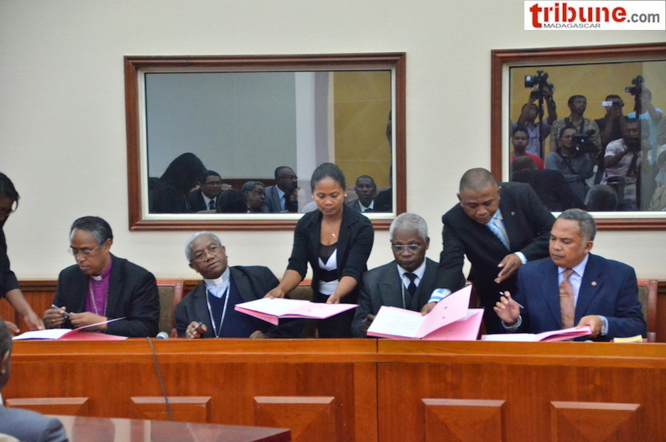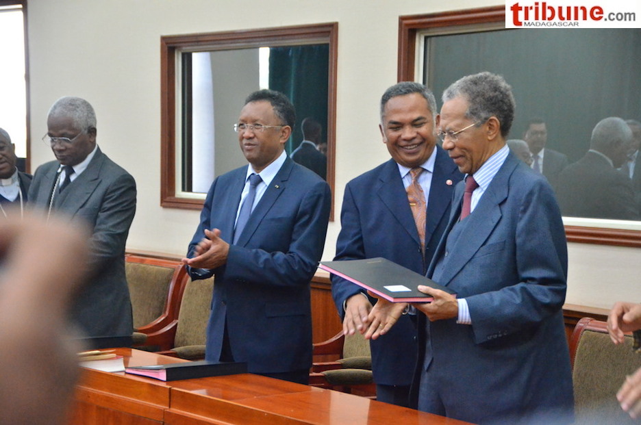 Les anciens présidents de la République, Didier Ratsiraka et Marc Ravalomanana étaient présents à cette cérémonie de signature, ainsi que tous les membres du FFKM. Il s’agit maintenant de concrétiser ces recommandations, qui, selon le FFKM, vont sortir définitivement le pays de la situation de crise. « Mais, la réconciliation nationale n’est pas encore achevée, car le processus suit son cours et le chemin est encore long » a déclaré le Pasteur Lala Rasendrahasina, président du FFKM.
