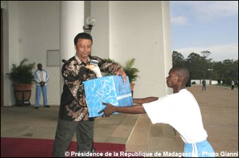 La traditionnelle Journée des Officiers a été célébrée par les Officiers de la Présidence de la République dans la matinée d’hier, au palais d’Etat d’Iavoloha, en présence du président de la République, chef Suprême des Forces Armées, Marc Ravalomanana. L’occasion était pour le Général Ramananarivo Claude, premier responsable du Service Civique de la Présidence, de présenter, au nom des officiers, les vœux du Nouvel An au chef de l’Etat et de lui offrir « l’oie traditionnelle ».