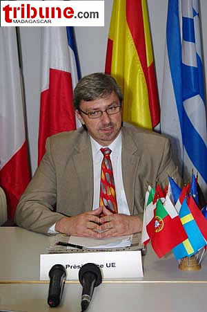 Conférence de presse de l’Union Européenne qui s’est tenue au siège de la représentation de l’UE au tour Zital Ankorondrano ce mercredi 20 mai 2009, après le dialogue politique de la veille.