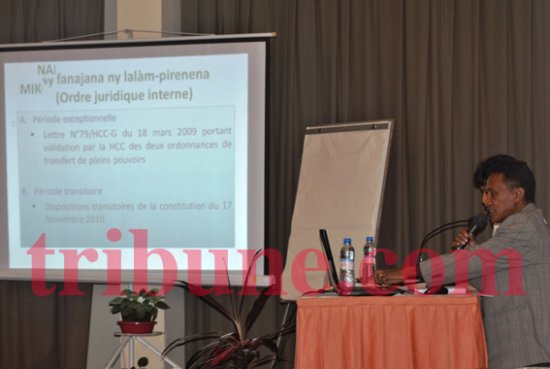 Les photographies montrent notamment les projections qui avaient accompagné l’exposé de Pierre Andrianantenaina.