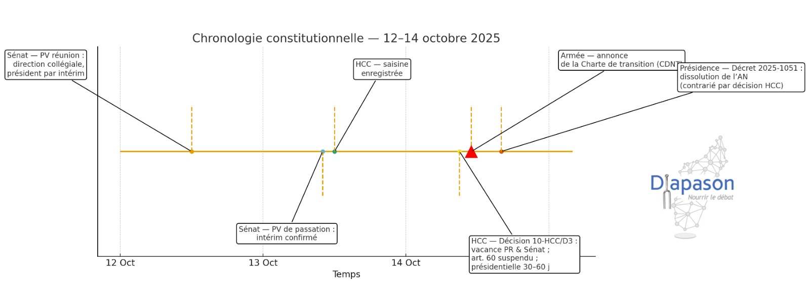 - Haute Cour Constitutionnelle, décision n°10/D3 (vacance du pouvoir, encadrement 30-60 jours) mentionnée dans l’article.
