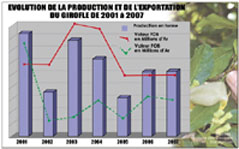 En matière de production pourtant, la récolte de girofle n’a pas beaucoup augmenté. Elle a même diminué si on devait se référer à la production de 2001. Une timide reprise de la production est toutefois constatée. La production de girofle 2006, a été dépassée dès le premier semestre 2007. Ce regain de dynamisme du girofle de Madagascar peut s’expliquer par la montée du cours de ce produit sur le marché international. De 1,2 DTS le kilo en 2005, il a gagné en valeur pour être en 2006 à 1,74 DTS le kilo. Singapour est le principal importateur de girofle de Madagascar, ce dernier a importé 66% de girofle malgache en 2005 et 51% en 2006.