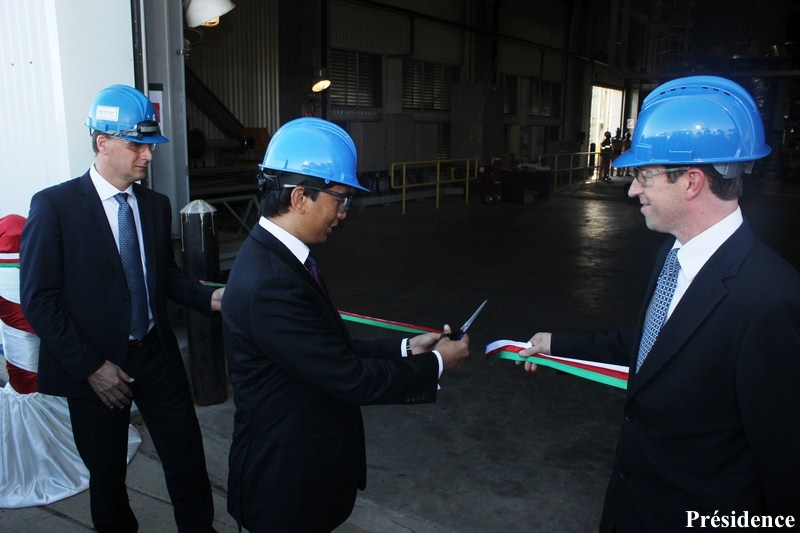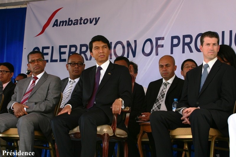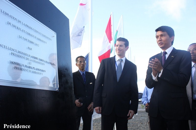 Le président de la Transition, Andry Rajoelina, à la tête d’une forte délégation officielle, a honoré de sa présence, ce vendredi 5 octobre 2012, la cérémonie de démarrage de la production et de l’exportation de nickel et de cobalt à l’usine d’Ambatovy à Toamasina.