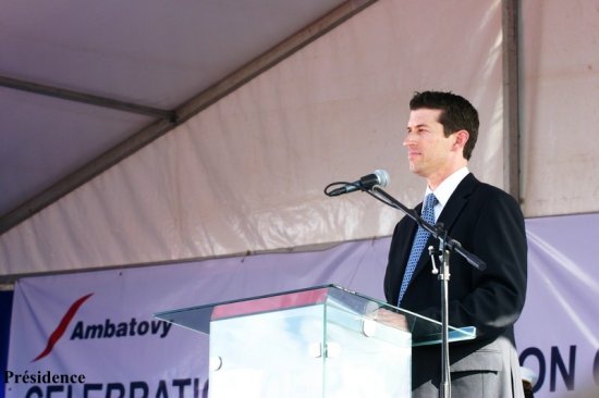 Dans son discours, le président d’Ambatovy, Mark Plamondon, a expliqué que les investisseurs potentiels observent de près le Projet Ambatovy qui travaille avec 500 entreprises et sous-traitants. Le succès continu de la compagnie nous permettra, poursuit-il, « d’être en tout temps ambassadeur efficace de Madagascar auprès de la communauté financière internationale ». Il a souligné que : « (…) Ambatovy exportera des produits finis, prêts pour la vente sur le marché international du London Metal Exchange. C’est une grande réalisation pour Madagascar, dont nous pouvons tous être fiers ». Avec Ambatovy, Madagascar accède au rang des grands pays producteurs miniers, le 2nd pour être précis. Il n’a pas non plus manqué d’exprimer sa satisfaction envers les divers intervenants gouvernementaux avec lesquels la compagnie collabore étroitement. Le président de la compagnie a réaffirmé qu’Ambatovy a offert 25 millions de dollars ; une somme qui sera affectée au volet social (construction d’infrastructure pour renforcer la lutte contre la pauvreté). Il a aussi souhaité le soutien et l’appui du président de la Transition pour la promotion de l’industrie minière. L’exploitation menée à Ambatovy durera 29 ans, avec une production annuelle de 60 000 tonnes de nickel et de 5 600 tonnes de cobalt raffinés, tous raffinés à 99,8% pur, selon les besoins du marché international, une fois la vitesse de croisière atteinte. Ambatovy est une exploitation moderne et différente des autres industries d’extraction africaines car elle fait bénéficier le pays des retombées économiques et financières importantes. Contrairement aux projets miniers dans les autres pays d’Afrique, Ambatovy en effet n’exporte pas du minerai brut ou semi-fini, il exporte des produits raffinés, des produits finis.
