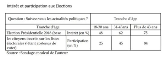 Les tableaux « Niveau d’instruction des abstentionnistes », « Déterminants de l’abstention », « Intérêt et participation aux élections » sont tirés de « Abstention Electorale à Madagascar : Entre Deficit Civique et Defaillance de la Classe Politique » par Jean Angelson Randriamboavonjy (pdf disponible en ligne). Merci à l’auteur