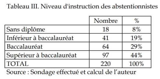 Par aillleurs, l’absence d’étude sociologique sérieuse, ne nous permet pas de définir précisément le profile type des abstentionnistes, jusqu’à ce jour, ce ne sont que des suppositions. Par conséquent, à ce moment, l’orientation politique de leur majorité est incertaine, n’est forcément pas d’un camp à l’autre, tout est possible en fonction de la conjoncture.