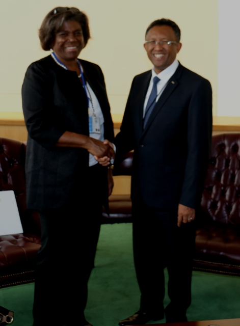 À New York, la participation au Sommet de la 69ème session de l’Assemblée Générale des Nations Unies a été le clou de ce déplacement où Madagascar a repris sa place d’honneur au sein de cette institution. Des débats de « haut niveau » concernant la population et le développement, le changement climatique étaient à l’ordre du jour de ce sommet. Le président de la République a évoqué à son retour les discussions entreprises avec de hauts responsables concernant le trafic sur le bois de rose, la coopération internationale pour arrêter cette pratique avec l’Organisation internationale des Douanes, l’Interpol et le Cites. Puis des rencontres avec les responsables de l’ONUDI et le Secrétaire adjoint américain aux affaires africaines, Lisa Thomas Greenfield concernant la coopération avec Madagascar, dont la reprise de l’Agoa.