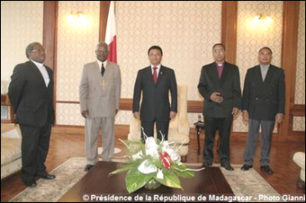 Pour le président de la République Marc Ravalomanana, il importe que le « FFKM puisse être au fait des politiques et programmes de l’Etat » afin de soutenir les actions de sensibilisation de la population à fournir davantage d’efforts pour la production. Il a reçu les quatre Chefs d’Eglise du FFKM, les Pasteurs Rasendrahasina Lala et Rakoto Endor Modeste, Mgr Odon Marie Arsène Razanakolona et Mgr Ranarivelo Samoela Jaona, au cours d’un déjeuner, hier au palais d’Etat d’Iavoloha. Une rencontre qui intervient traditionnellement entre « Raiamandreny » et « Zanaka » en cette période de l’année, et qui, selon le chef de l’Etat, aura permis aux deux parties de discuter et d’échanger des points de vue dans le cadre de la collaboration et du partenariat à établir pour la réalisation des défis de cette nouvelle année.