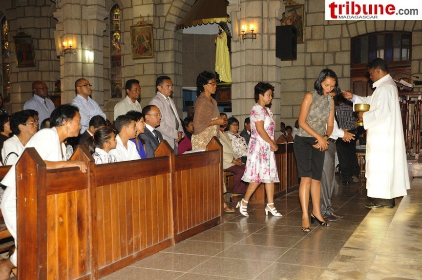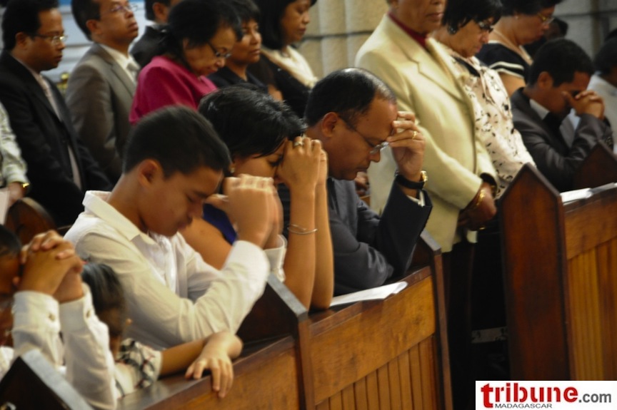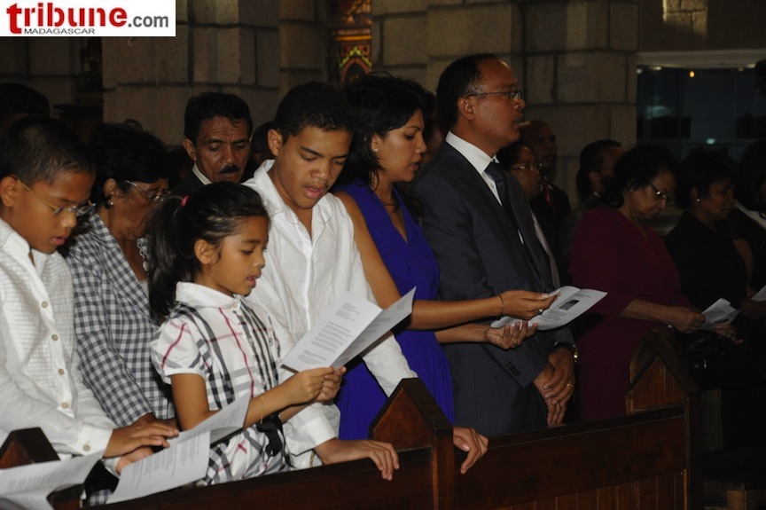 Le premier geste public du candidat du TGV ce dimanche 7 avril a été de prier ; cet après-midi du 7 avril, une messe a été organisée à la cathédrale catholique à Andohalo.