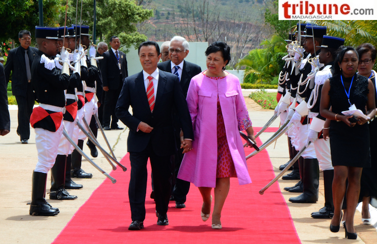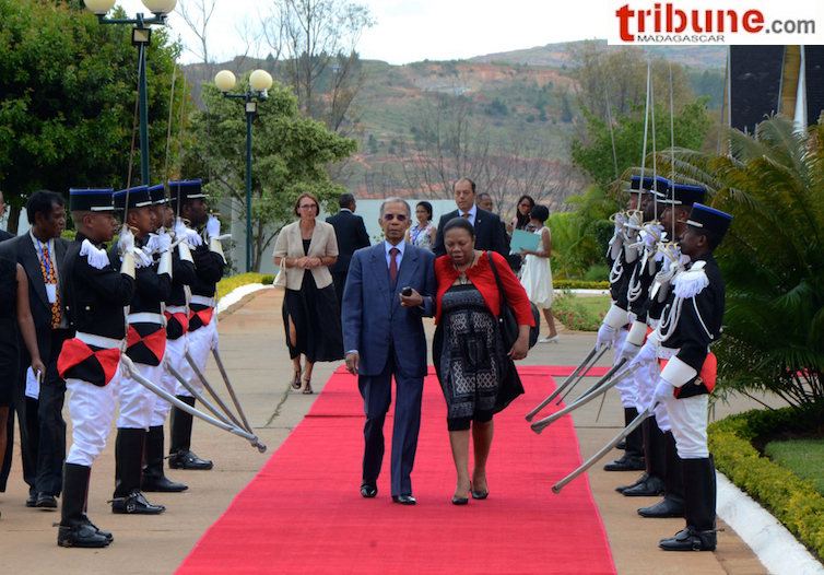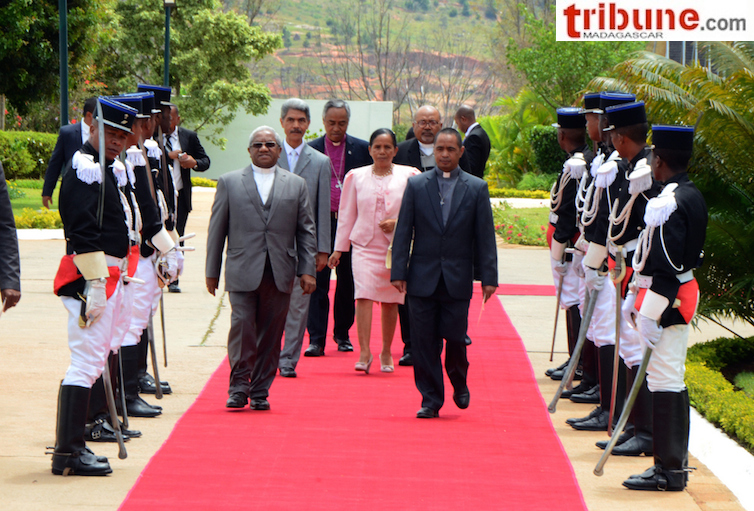 La cérémonie de présentation de voeux s’est déroulé sans encombres au palais d’Etat d’Iavoloha ce 6 janvier 2017 en présence de tous les chefs d’institution, de tous les chefs d’église du FFKM et des représentations diplomatiques travaillant dans l’île. Le président Hery Rajaonarimampianina a une fois de plus noté dans son discours la reconnaissance et l’appui de la communauté internationale. Il a insisté sur la politique énergétique qu’il conduit et a promis du travail par la promotion de zones économiques spéciales dans de nombreuses régions du pays. A noter que parallèlement au festin d’Iavoloha, s’est tenu sur la place de l’Indépendance à Antaninarenina, une manifestation silencieuse de Wake Up Madagascar pour l’arrêt de telles dépenses faramineuses alors que plus d’un million d’individus souffrent de famine chronique dans le sud.