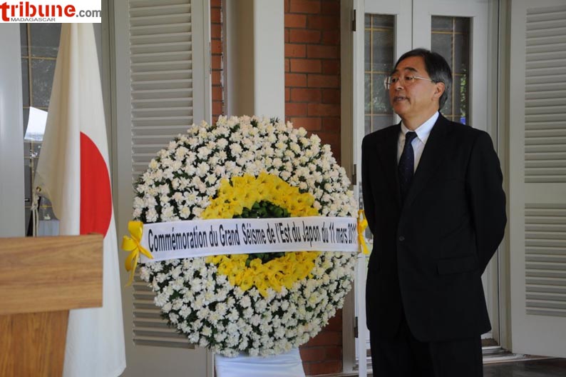 L’ambassade du Japon a commémoré ce vendredi 9 mars le premier anniversaire du grand séisme du 11 mars 2011 qui a ravagé une partie de l’Est du Japon. Il a occasionné la mort de plusieurs milliers de personnes, et autant de disparus. L’ambassadeur du Japon a été soutenu dans cette commémoration de cette grande épreuve par la communauté internationale représentée à Madagascar. Voir les photos.