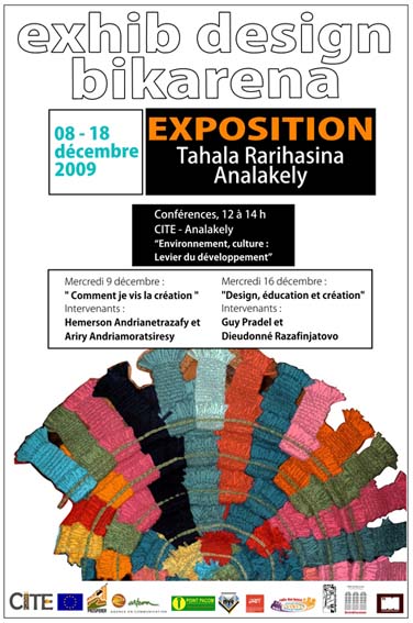 L’exposition EXHIB DESIGN / BIKARENA veut montrer qu’une créativité est enfouie au fond de chaque atisan-créateur. Elle réunit des artisans-créateurs, issus de divers horizons de Madagascar, identifiés par les 13 antennes du CITE.
