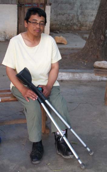 Et ses béquilles ? Elles sont dues à une maladie, la poliomélite, qu’elle a contractée à deux ans. Et elles ne lui ont pas toujours rendu la vie facile : « Quand j’étais enfant, je n’ai pu intégrer l’école d’Antsahabe qu’à partir de la classe de septième, pour des raisons de santé : avant, j’étais obligée de rester allongée. j’avais donc une préceptrice à la maison, et je prenais mes cours allongée sur le ventre, avec une tablette devant moi », raconte Fabienne. De même, son service national a dû être adapté, mais elle y a quand même appris les techniques de secourisme ou à monter et démonter une arme et en a gardé « un certain goût du respect de la hiérarchie », selon ses propres mots. Aujourd’hui encore, Fabienne déplore de ne pas être aussi autonome que le souhaiterait sa nature indépendante : avec son handicaps, beaucoup de gestes courants, comme monter ou descendre des escaliers, sont de véritables épreuves « et ça ne s’arrange pas avec l’âge ! ». Pour le déplacement à Majunga, elle s’est faite accompagner par une personne chargée de l’assister, mais du fait de cette dépendance, elle n’a pas osé permettre au petit garçon de neuf ans dont elle a la charge de l’accompagner, et avoue regretter son absence.