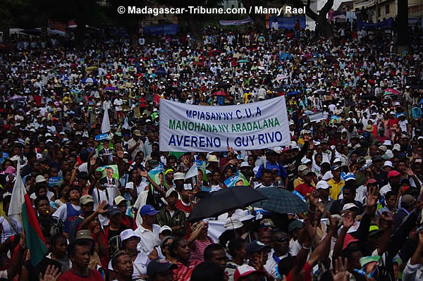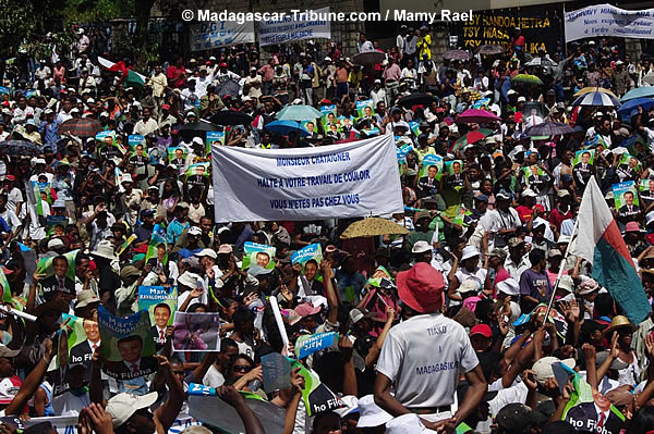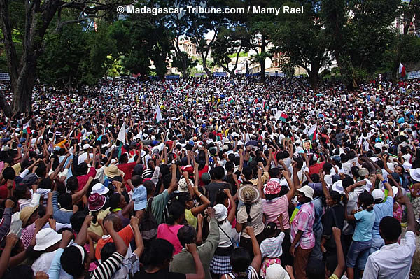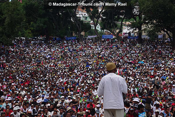 Encore une fois, la Place de la démocratie au jardin d’Ambohijatovo a vu, ce samedi 11 avril, le rassemblement des partisans du retour de Marc Ravalomanana et à la « légalité constitutionnelle ». Outre les discours de propagande d’usage, le meeting a été l’occasion pour les manifestants d’écouter le message de « Dada » par liaison téléphonique. Marc Ravalomanana y annonce sa détermination à revenir au pays surtout après avoir appris l’épisode de la marche des femmes qui a été un succès, a-t-il reconnu. Sans oublier de souhaiter de joyeuses Pâques, il a fait part à ses partisans des démarches qu’il effectue à l’extérieur pour pouvoir rentrer auprès de ses partisans dans le pays. L’ambiance au jardin d’Ambohijatovo était à la fête comme le montrent les photos de notre reporter, Mamy Rael.