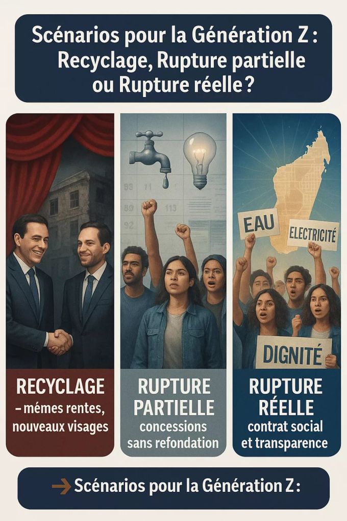 La résilience malgache s’exprime d’abord par un dégagisme clair qui a servi d’objectif majeur et a permis de rompre l’inertie. Après des années de contraintes vécues sous la présidence Rajoelina, une partie du peuple pourrait considérer que changer de visage suffit pour avancer et retrouver un quotidien moins pénible. Ce réflexe est compréhensible mais il porte un risque pour la Génération Z. Le second objectif qui consiste à transformer le système plutôt que la seule tête de l’exécutif peut s’éloigner si la société accepte un apaisement minimal en échange d’une stabilité immédiate. S’ajoute un décalage de vitesse entre l’énergie de la Génération Z et le tempo du pays profond. Les jeunes veulent aller droit au but tandis que la majorité aspire à des gains concrets et progressifs. La résilience doit donc conjuguer soulagement rapide et cap sur la refondation. Il faut sécuriser des résultats visibles sur l’eau, l’électricité et les prix tout en gardant la boussole du changement institutionnel pour que le dégagisme ne devienne pas une simple parenthèse.