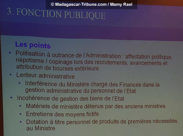Devant le premier ministre et en présence de la presse, les membres du gouvernement de Transition ont procédé chacun à leur tour, à des exposés sur l’état de leurs investigations contre Tiko group et le président Marc Ravalomanana.