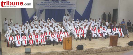 Koa manentana ny Kristiana rehetra fa raha tonga ny fanenjehana ny Kristiana izay efa nahazatra ny FJKM satria Fiangoanana taranaky ny Maritiora izy ; dia tsy ho ny FJKM irery no hofongorana ao anatin’izany fa ny Kristiana rehetra . Mahavelom-bolo sy mahavelom-panatenana ny ho avin’ny Tanindrazana satria rehefa ny Kristiana no mirotsaka an-tsehatra dia tsy maintsy mandresy no dikan’izany . Koa mahareta ; Mivavaha ary miasà .Momba antsika Andriamanitra !