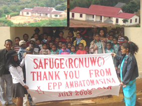 Après Sierra Leone, Madagascar. A 18 ans, elle est élue présidente de l’association SAFUGE (Save the future génération) du Collège Red Cross Nordic United World Colleges, en Norvège depuis l’année scolaire 2007/2008, et ce pour deux ans. Elle est également sortie major dans toutes les matières. Le nouveau Président, Danamona Holinirina Andrianarimanana, a convaincu les membres d’aider l’école primaire d’ Ambatomasina, commune rurale d’Antsahalalina, à 60 km