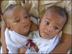 Grâce aux médias, l’événement a attiré l’attention de tous les Malagasy : la naissance de Mahalatsa et Mahagaga, des jumeaux siamois. Ils sont collés au niveau de la partie ventrale et du thorax. Mahalatsa et Mahagaga sont nés le 19 juin 2008 à Amboasary-Atsimo, Région d’Anosy. Ils sont arrivés à l’Hôpital Joseph Ravohangy Andrianavalona d’Ampefiloha (Antananarivo), une semaine après, pour y être opérés. Mais vu leur poids, 2,8 kg seulement, l’équipe médicale dirigée par le Pr Andriamanarivo Mamy Lalatiana estime qu’il est absolument nécessaire de faire augmenter leur poids en leur donnant des aliments de qualité et nutritifs.
