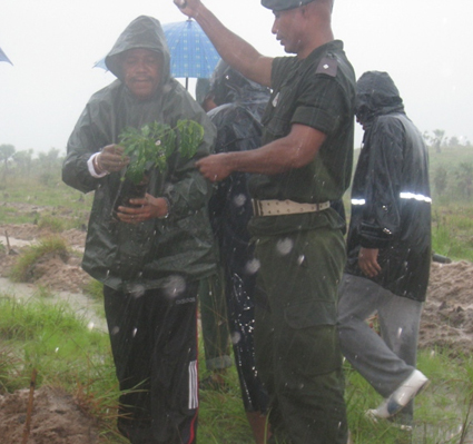 La Région Boeny s’est fixée comme objectif de planter 11 000 pieds d’acacia, d’eucalyptus et de Dalbergia pendant cette saison de reboisement 2011. 5000 plants confondus ont été plantés ce jeudi 27 janvier sur un terrain de 6 ha à Marohogo, commune d’Ambalakida, district de Mahajanga II. Malgré la pluie torrentielle, l’appel de la Direction régionale des eaux et forêts a été entendu.