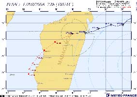 Le cyclone tropical IVAN planait sur Ampasimbe, Fénérive-Est, hier matin, à 10 heures locales. A midi, il surplombait le district de Vavatenina, avec un vent de 135 km à l’heure. Selon les prévisions il continue son trajet sud, sud-ouest. Le bureau du district de Mandritsara a subi de graves dommages.