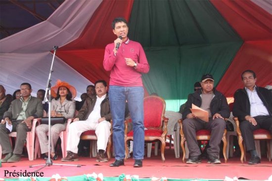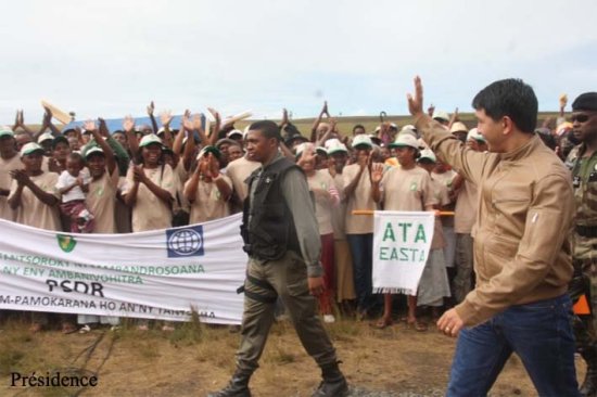 Plus que la cérémonie de remise des titres verts à quelques 50 jeunes nouvellement installés sur le site La Bourdonnais de plusieurs dizaines d’hectares dans les environs de Brickaville, et la création d’un nouveau bourg sécurisé par un poste avancé de la Gendarmerie et un centre de santé de base, c’était les positions du président de la HAT, qui y avait fait le déplacement ce vendredi 15 juillet, à propos du trafic de bois de rose qui ont davantage attiré l’attention de tous. En fait, l’occasion de ce déplacement avait été saisie par Andry Rajoelina pour dénoncer fermement les trafiquants de bois de rose et leurs complices. Le président de la HAT donne l’impression de vouloir mettre fin à ces exportations illicites et frauduleuses de bois de rose.
