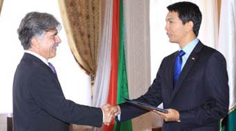 Un an après son arrivée dans le pays, le chef de Délégation de l’Union européenne, Leonidas Tezapsidis, a finalement présenté ses lettres de créance au président de la transition, Andry Rajoelina. C’était ce mercredi 18 janvier 2012 au Palais d’Etat d’Iavoloha. La démarche fait suite à la décision du Conseil de l’Union européenne du 5 décembre 2011 au titre de l’article 96 de l’accord de Cotonou qui précise que l’accompagnement politique et financier de l’Union européenne (UE) à Madagascar est conditionné au respect par la partie malgache des engagements pris dans le cadre de la feuille de route de sortie de crise [1]. La décision du Conseil prévoit la présentation des lettres de créance de l’Ambassadeur de l’Union européenne après la nomination du Premier ministre et du gouvernement de transition d’union nationale.