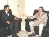 L’ambassadeur des Etats-Unis à Madagascar, SEM. Niels Marquardt, s’est dit très impressionné par la « qualité » de la démocratie dont a fait preuve le peuple malgache, et en particulier la population tananarivienne, durant les dernières élections municipales. Une déclaration qu’il a faite après une visite de courtoisie qu’il a effectuée hier après-midi au premier magistrat de la capitale, le maire Andry Rajoelina. « On a dit qu’il a effectué une campagne à l’américaine et je tiens à le féliciter de la manière dont il a fait « jouer » la démocratie à Madagascar », a-t-il continué. En ce qui concerne une éventuelle collaboration entre la commune urbaine d’Antananarivo et les USA, aucun financement de projet n’est encore au programme. Toutefois, le représentant des Etats-Unis a déclaré être à l’écoute des ambitions du nouveau maire afin de l’assister dans sa démarche pour le développement de la ville d’Antananarivo.