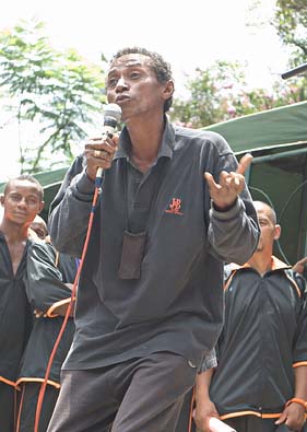 En tout cas, se comportant comme un justicier, Sareraka ou Yvon William Randriazanakolona refuse le droit des accusés à la défense quand il dit, en rappelant à la presse tous ces crimes, qu’il y a des individus qui osent défendre de tels actes. L’occasion de cette conférence de presse fut saisie par cet artiste des chansons à texte, pour donner son opinion sur les travaux conduits par le Groupe international de contact (GIC). « La transition n’a pas fait de coup d’Etat, dit-il ; il s’était plutôt agi d’une initiative de sauvetage de la nation car les militaires ont refusé de prendre et d’exercer le pouvoir qui lui a été transmis ».