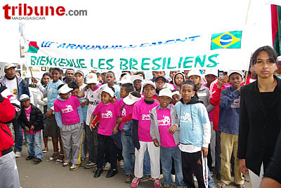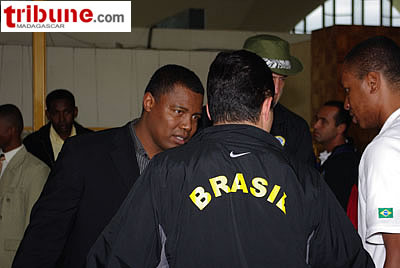 L’arrivée de l’équipe Brésilienne pour un match amical avec les Barea