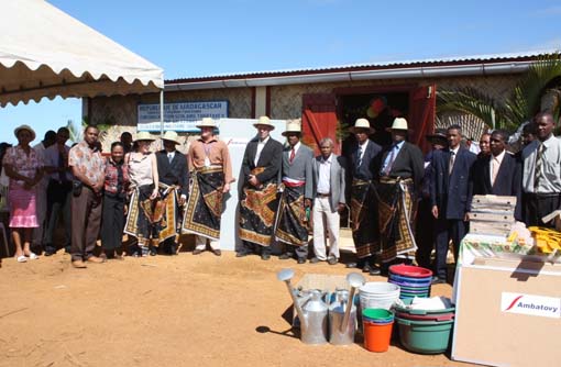 Revitaliser la scolarisation. Tel est l’objectif du Projet Ambatovy qui a inauguré ce vendredi 16 juillet 2010, l’Ecole Soamahatsinjo, à Tanandava, District de Toamasina II. Cette école constitue l’une des compensations au profit des populations relocalisées habitant les environs du parc de stockage de minéraux du Projet. Elle a sa petite histoire : juste avant la relocalisation de ces populations, compte tenu de la vulnérabilité de la communauté, l’ONG Inner-Wheel l’avait subventionnée occasionnellement, avant qu’elle ne devienne une école communautaire. Mais après la relocalisation à Vohitrambato, le taux de scolarisation a fortement baissé. Ce qui a amené le Projet Ambatovy à construire une nouvelle école, Soamahatsinjo, afin de revitaliser le secteur éducatif et de renforcer la scolarisation dans cette zone d’intervention du Projet.