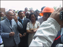 Le Premier ministre Charles Rabemananjara est le représentant de l’Etat venu constater la situation sur place. Pour lui, tous les citoyens sont responsables devant de telle catastrophe. Il a fait indiquer que le danger est écarté et l’incendie n’aura pas de conséquence sur la construction. Par ailleurs, il a assuré que les avions atterriront dès aujourd’hui même pour transporter les matériaux nécessaires pour remplacer ceux qui sont détruits. Il assurait également que nous avons le droit d’être jaloux de nos acquis et de nos biens. Donc, nous avons le devoir de nous entraider. Le chef du gouvernement était accompagné par des personnages influents de la nation tels le ministre des Affaires étrangères, Ranjeva Marcel ou M.Talbot Alexis, le directeur général de la police.