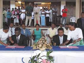Pour sa part, le DG de la MICTSL s’est félicité du bel exemple de vrai partenariat public/privé pour l’amélioration de la santé de la population de la CUT que constitue cette convention. Citant le proverbe malgache du « Toko telo mahamasa-nahandro », qui sont en l’occurrence la MICTSL, la CUT et le constructeur KIA Motors représenté par EDELEC, il a mis en exergue la forme de participation de ce dernier : une remise exceptionnelle sur le prix du véhicule. Auparavant le DG n’a pas manqué de rappeler que, depuis l’installation de son établissement, il y a 30 mois, la MICTSL n’a pas cessé de participer à des actions de développement en partenariat avec le gouvernement, la Région, la Commune et le port. En terme de modernisation des infrastructures et des équipements portuaires qui a fait que « le port de Toamasina figure aujourd’hui parmi les plus performants de la Région » (OI du Sud Ouest), et que les procédures sont améliorées à la satisfaction des usagers. « Elle a également beaucoup investi dans la formation de ses employés », sur place et à l’étranger. Elle s’est liée par convention à la CUT pour améliorer la collecte des redevances communales sur les conteneurs. Elle a enfin participé à la lutte contre le chikungunya.