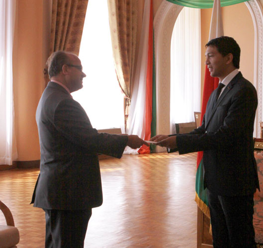 Après avoir été représentant permanent de la France auprès de l’Union africaine et ambassadeur de France en Éthiopie, Jean-Christophe Belliard, accompagné de ses proches collaborateurs, a présenté auprès du président de la Transition, Andry Rajoelina, ses lettres de créance le désignant nouvel ambassadeur de France à Madagascar ce mercredi 04 juillet 2012, au Palais d’État d’Iavoloha. À sa sortie de l’entretien avec le président de la transition, le nouvel ambassadeur de France a fait part de la position de son pays quant à la situation politique actuelle à Madagascar : « Nous avons fait le point sur l’actualité, sur la situation économique et sociale du pays. L’actualité aujourd’hui, c’est la rencontre prévue entre MM. Rajoelina et Ravalomanana. C’est une rencontre importante pour le pays. Nous attendons que la SADC nous dise quand, où et de quoi on parlera. En tout cas, pour la France, cette rencontre est fondamentale car il me semble qu’elle peut débloquer les choses, le retour à la normalité politique et le reste suivra : le retour des aides et accords avec le Fonds monétaire international, le retour de la croissance et l’amélioration de la situation économique et sociale. Nous souhaitons que cette rencontre ait lieu. Nous en parlons avec les partenaires de la Communauté internationale, avec l’Afrique du Sud, la SADC, l’Union européenne et avec les États-Unis. Ce n’est pas la France qui organise cette rencontre mais c’est la SADC. Simplement, nous exprimons notre opinion. Cette rencontre doit avoir lieu et elle doit produire des résultats. L’objectif c’est qu’il y ait de résultats. Il ne s’agit pas de se rencontrer pour se rencontrer. C’est ce que nous souhaitons ».