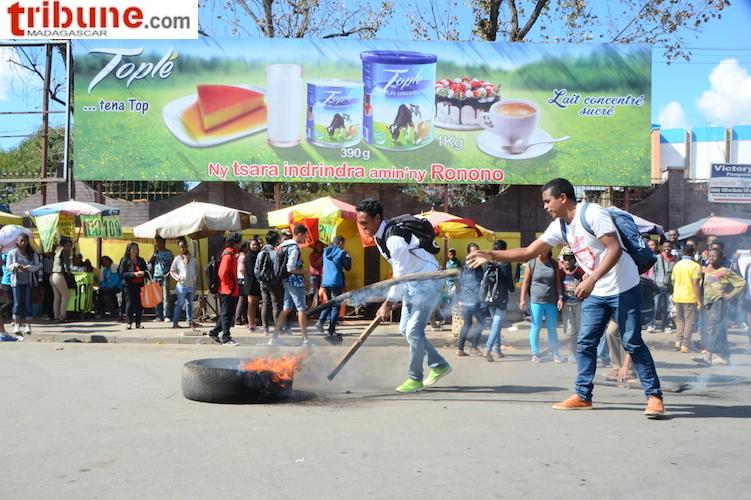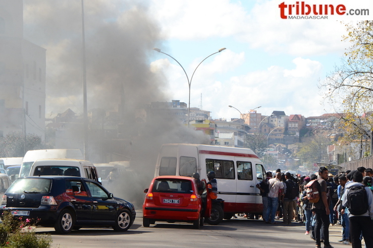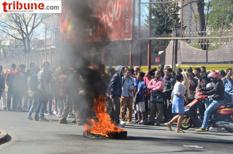 Les usagers de la route Andavamamba-Ampefiloha ont vécu des moments encore plus difficiles que d’habitude ces derniers temps. En plus des embouteillages monstres à l’approche des fêtes, les étudiants de l’Ecole Nationale Supérieure (ENS) de l’Université d’Antananarivo sont descendus dans la rue pour exprimer leurs revendications. Ils ont bloqué une partie de la route au niveau du rond-point et y ont brûlé des pneus. C’est aujourd’hui une manière de s’exprimer des étudiants de nos universités. Bien évidemment, les forces de l’ordre de l’EMMO sont intervenues en pompier comme d’habitude et aussitôt les étudiants sont rentrés dans l’enceinte de l’Ecole.
