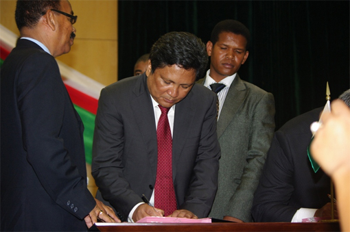 Qu’est qui empeche les observateurs/acteurs politiques malgache aujourdhui de ne pas voir à la ceremonie de paraphe d’hier comme la materialisation d’un consensus ou d’unanimité enfin trouvée ,du moins entre la Mouvance Rajoelina et la Mouvance Ravalomanana ( ne parlons plus de Mouvance Zafy et Ratsiraka qui sont dejà depuillées de leurs substances il ya plusieurs mois)
